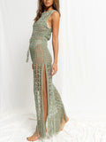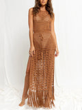 Women's Bikini Top Hollow Lace Tassel Swimsuit Coat Beach Long Dress