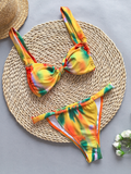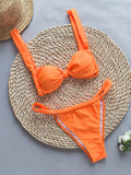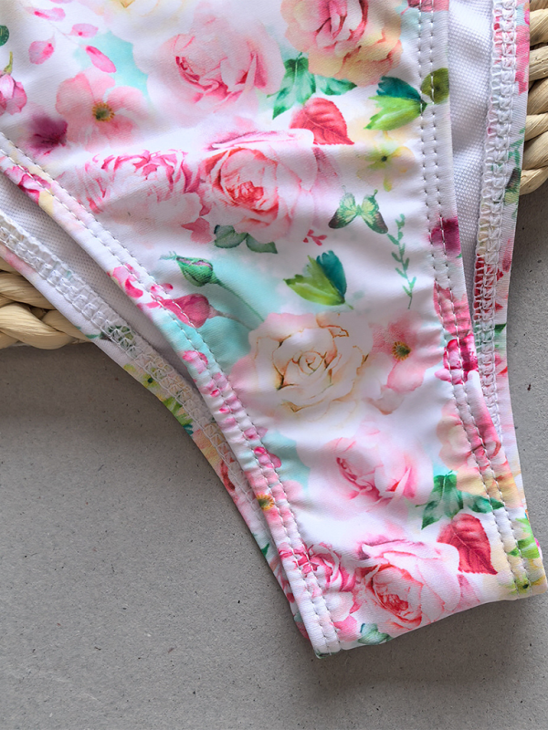 Women's Fashion Strappy Floral Print Solid Color Bikini