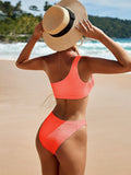 Women's New Solid Color One Shoulder Pleated Fabric Sexy Bikini High Waist Split Swimsuit