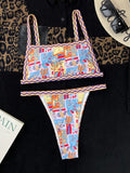 Women's one-piece swimsuit bandeau style colorful ethnic print sexy bikini