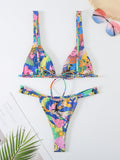 Women's printed sexy backless bikini