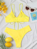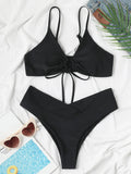Women's Solid Color Drawstring Tie Sexy Bikini