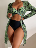 Women's tropical print bikini three-piece sets