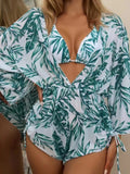 Women's Tropical Print Tie High Waist Bikini Three-Piece Set