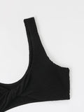 Women's twisted one-piece swimsuit wrinkled wavy fabric bikini